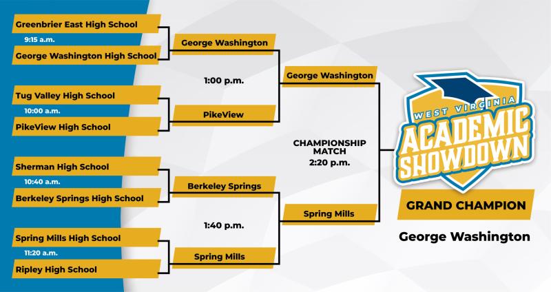 The West Virginia Academic Showdown is an academic head-to-head competition between West Virginia high school teams. A partnership between West Virginia Department of Education, the West Virginia Higher Education Policy Commission, West Virginia Public Broadcasting, and the West Virginia Department of Arts, Culture, and History.