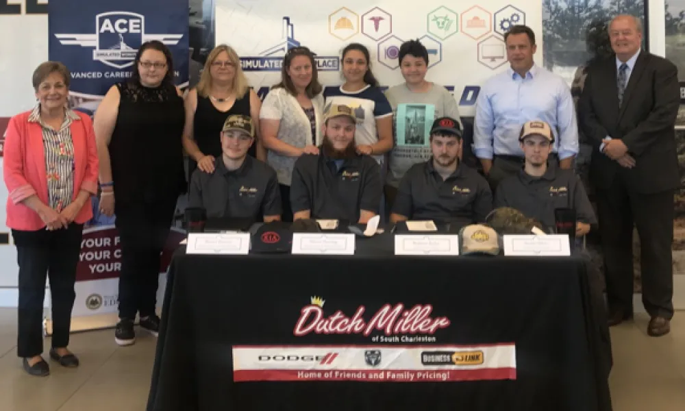 Charleston, W.Va. – Six students from West Virginia’s nationally recognized Career Technical Education (CTE) Simulated Workplace program participated in the first-ever Simulated Workplace Career Signing Day at Dutch Miller today in South Charleston. Recent Automotive Technology graduates signed symbolic employment letters with the company. The signing represents the ongoing partnership between the West Virginia Department of Education (WVDE) and Dutch Miller Auto Group to provide employment opportunities for students who meet the automotive industry’s demand for skilled workers.