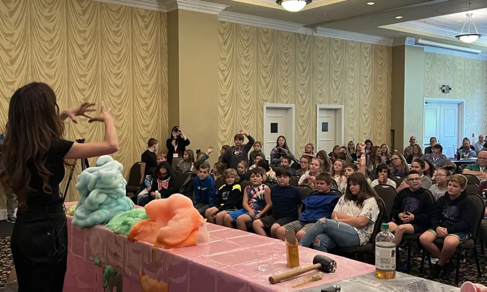 GLADE SPRINGS, W.Va. – West Virginia native and nationally renowned science celebrity Emily Calandrelli captivated local students with engaging experiments today. The visit was part of the West Virginia Department of Education’s (WVDE) career technical education (CTE) Wild & Wonderful CTE Fall Administrators Conference. The WVDE is hosting the three-day conference at the Resort at Glade Springs in Daniels, West Virginia, concluding Friday, Sept. 29.
